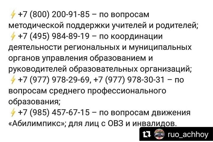 Контакты служб поддержки учителей и родителей.