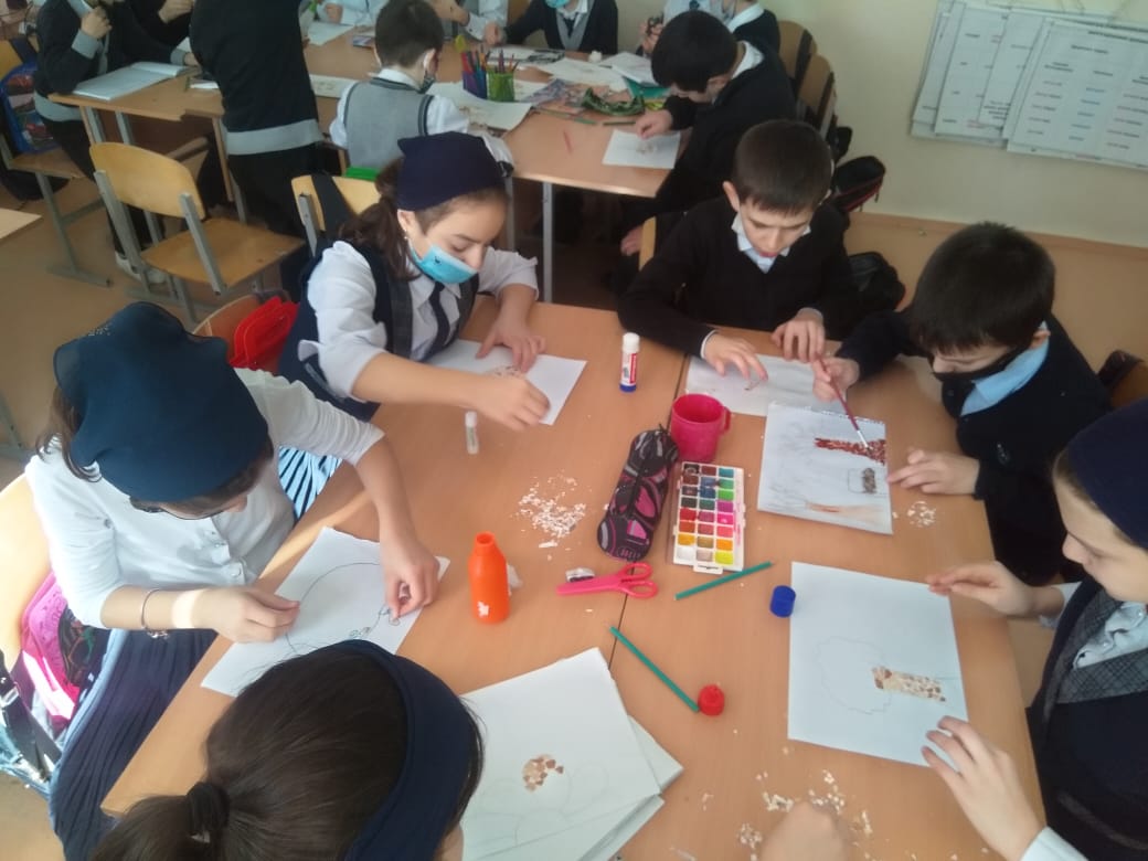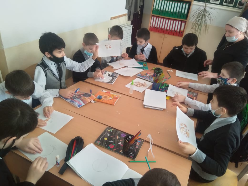 На уроке технологии обучающиеся 5 класса делали поделки из природных материалов