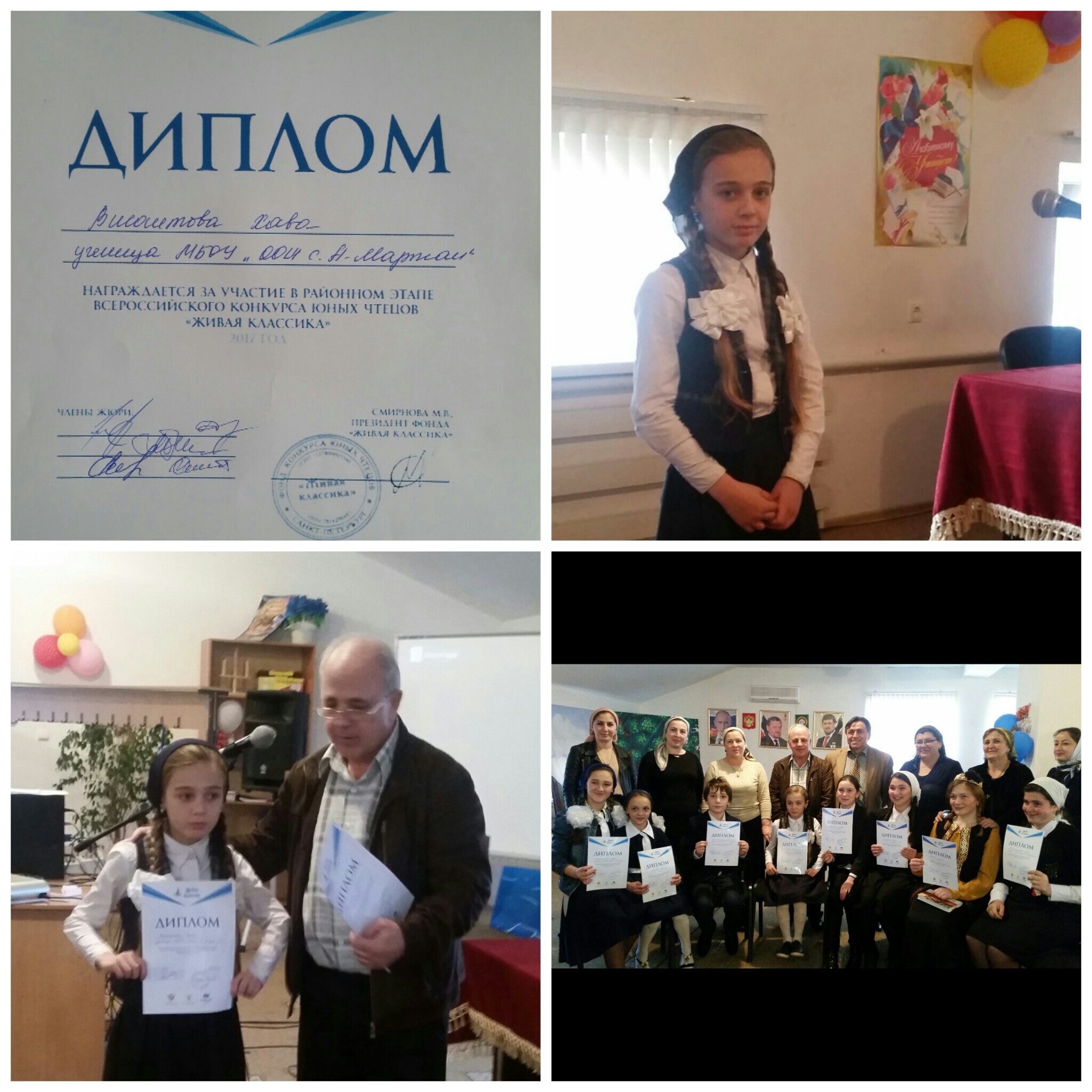 Ученица 6 "а" класса Висаитова Хава приняла участие в районном этапе Всероссийского конкурса юных чтецов "Живая классика"