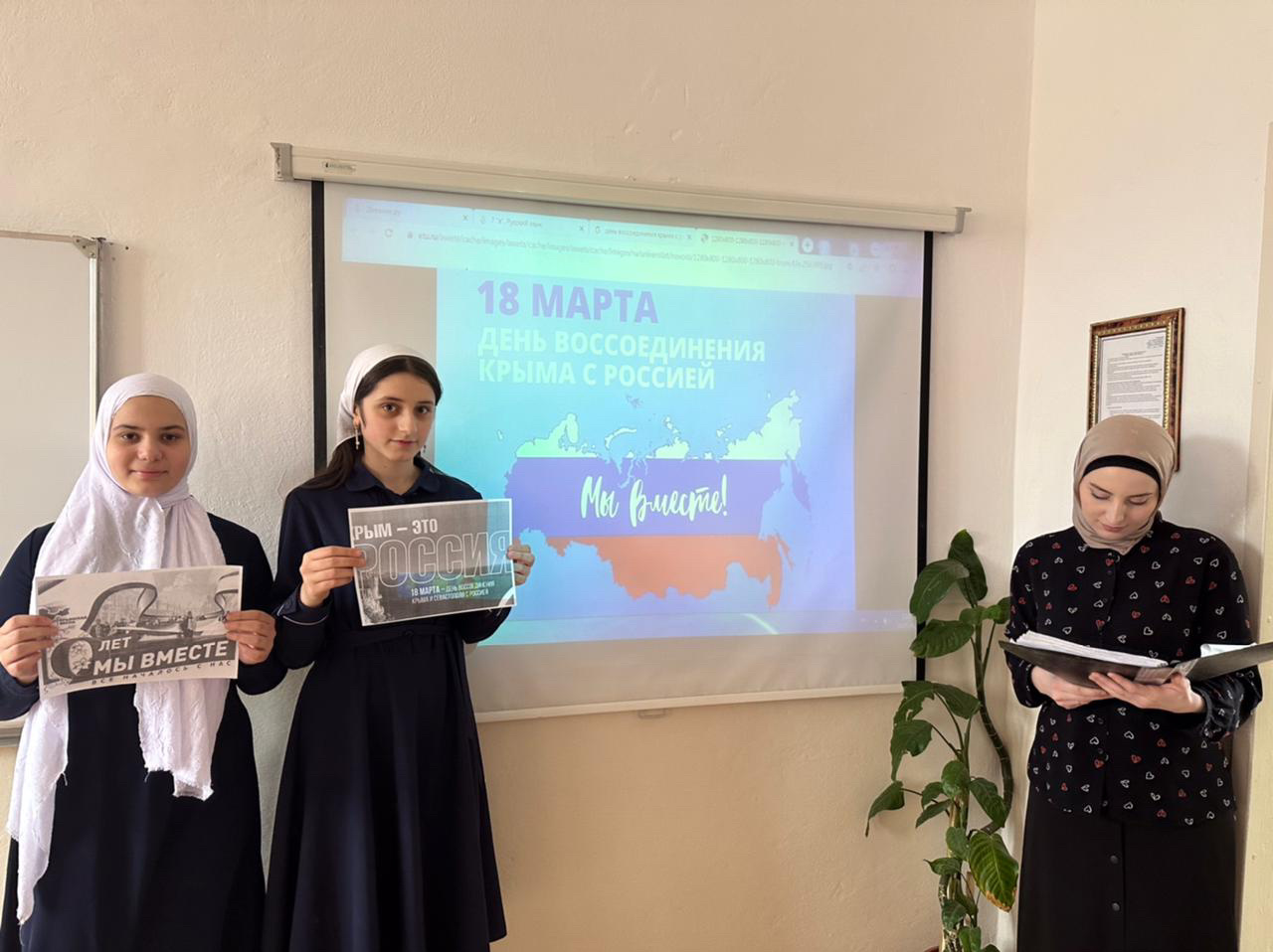В нашей школе МБОУ " ООШ с.Ачхой-Мартан" активисты РДДМ " Движение первых " приняли участие во Всероссийской акции «10 лет вместе!", посвященной Дню воссоединения Крыма с Россией. #ДружбаПервых и #МиллионДобрыхДел.
