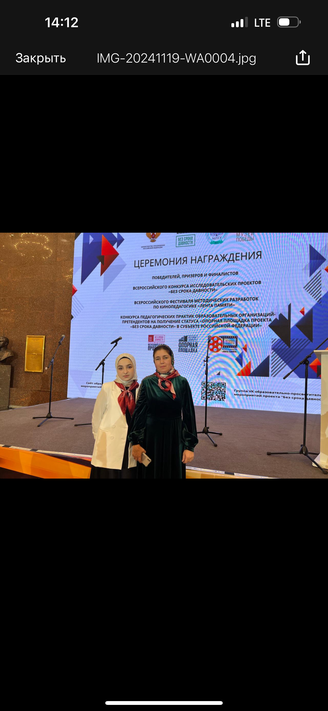 В награждении победителей в номинациях, а также призеров конкурса и фестиваля приняли участие 250 педагогов и учащихся из разных регионов страны, которые представили лучший опыт сохранения исторической памяти. В их числе были представители Основной общеобразовательной школы города Ачхой-Мартан Туруева Медна Сулимановна, руководитель проекта, учащиеся 9 класса - Касаева Алия Билаловна и Ибрагимова Амина Рамзановна. Участники проекта, стали финалистами федерального этапа Всероссийского конкурса исследовательских проектов «Без срока давности». Девятиклассники представили проект «Народный приговор» в направлении «Судебные процессы в СССР и Российской Федерации, посвященные раскрытию обстоятельств геноцида мирных советских граждан в период Великой Отечественной войны 1941˗1945 годов». Творческая работа, отразила исторические события Великой Отечественной войны, собственную активную жизненную позицию по сохранению памяти о войне, трагедии мирного населения.